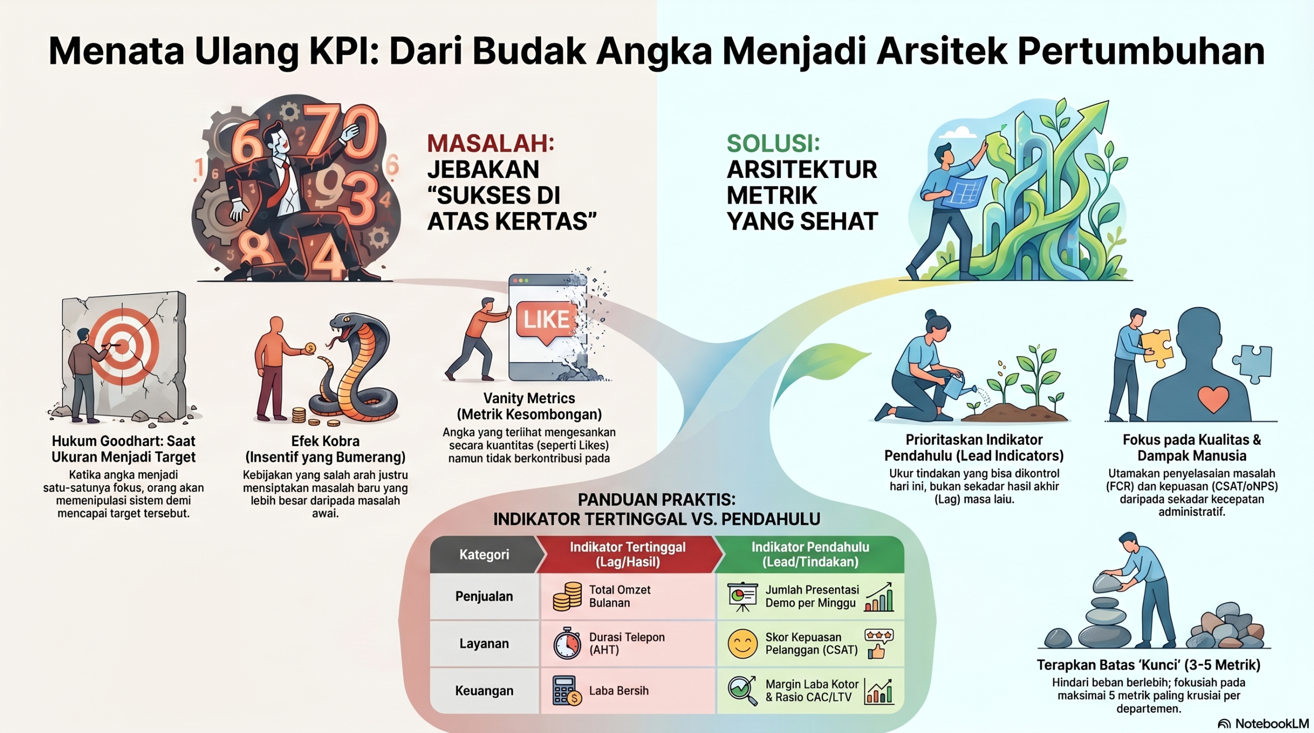 KPI Adalah Alat Komunikasi, Bukan Pecut: Angka yang Anda pilih untuk diukur akan meneriakkan apa yang paling berharga bagi perusahaan. Jika Anda mengukur kecepatan, tim Anda akan mengorbankan kualitas.