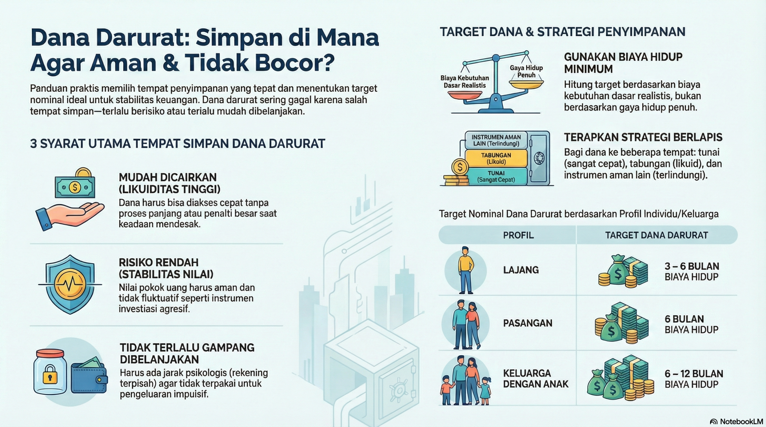 • Dana darurat sering gagal berfungsi bukan karena nominalnya kecil, tetapi karena disimpan di tempat yang keliru.
