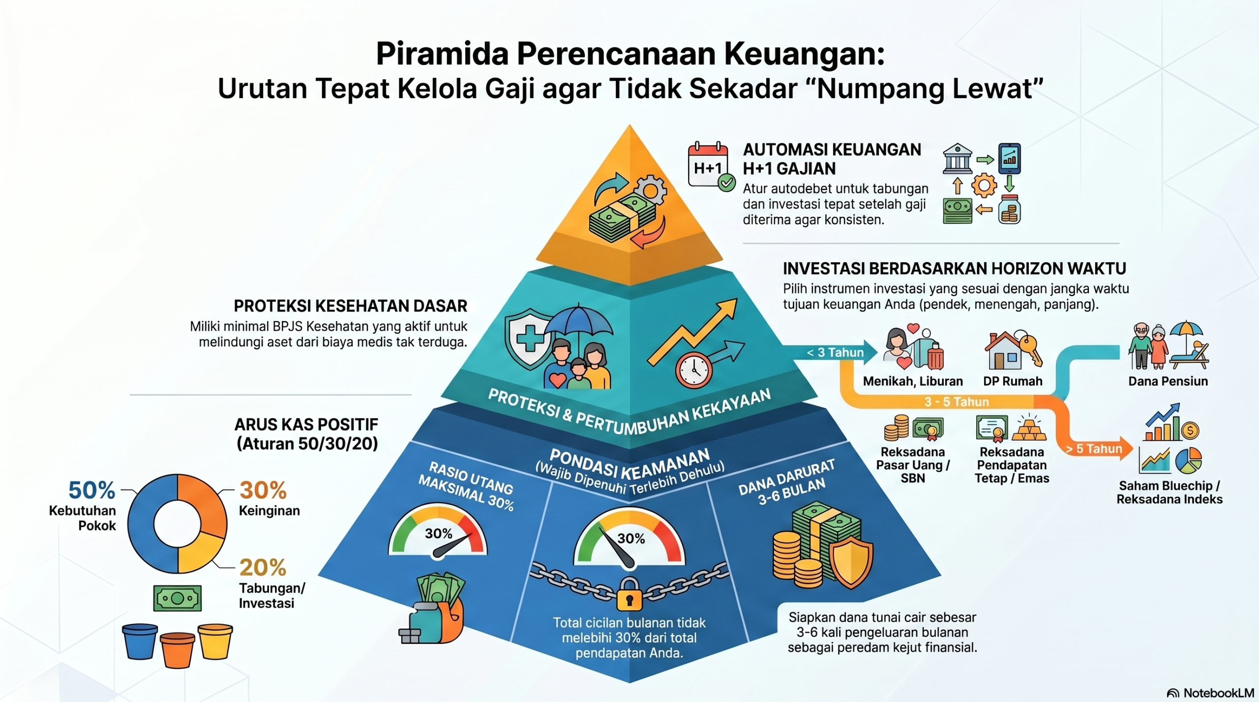 Berapa kali Anda merasa gaji hanya “numpang lewat” di rekening pada akhir bulan? Bagi banyak profesional muda di Indonesia, menerima gaji seringkali diikuti dengan euforia sesaat, yang kemudian dengan cepat berubah menjadi kecemasan finansial di pertengahan bulan. Masalah utamanya bukanlah pada seberapa besar gaji yang Anda terima, melainkan tidak adanya sistem atau urutan yang jelas dalam mengelolanya.