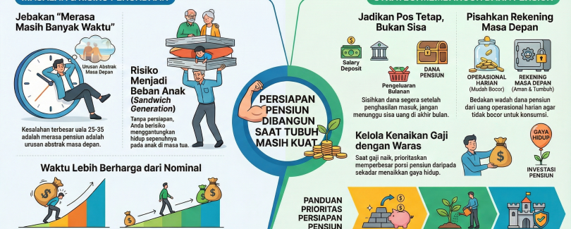 Salah satu kesalahan terbesar anak muda bukan karena mereka malas bekerja, tidak punya ambisi, atau tidak peduli masa depan. Kesalahan yang lebih halus justru ini: merasa masih punya terlalu banyak waktu. Karena usia masih 20-an atau awal 30-an, banyak orang berpikir urusan pensiun bisa dipikirkan nanti saja. Sekarang fokus dulu …