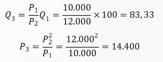 Untuk menentukan efek pengganti dan efek pendapatan, kita perlu mencari harga dan jumlah yang membuat konsumen tetap berada pada kurva indiferen yang sama dengan anggaran yang baru. Misalkan harga dan jumlah tersebut adalah dan . Maka, kita dapat menggunakan persamaan berikut:
