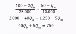Dengan mengganti nilai-nilai tersebut ke dalam persamaan ekuivalensi marjinal, kita dapat menghitung nilai dan sebagai berikut: